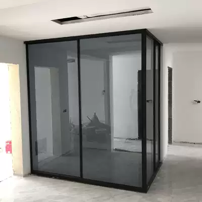 Black narrow edge sliding door Nordic wind sliding door thin frame hanging wheel door black frame glass sliding door partition kitchen sliding door