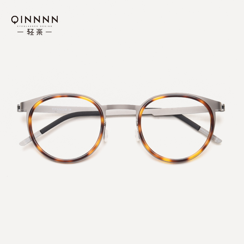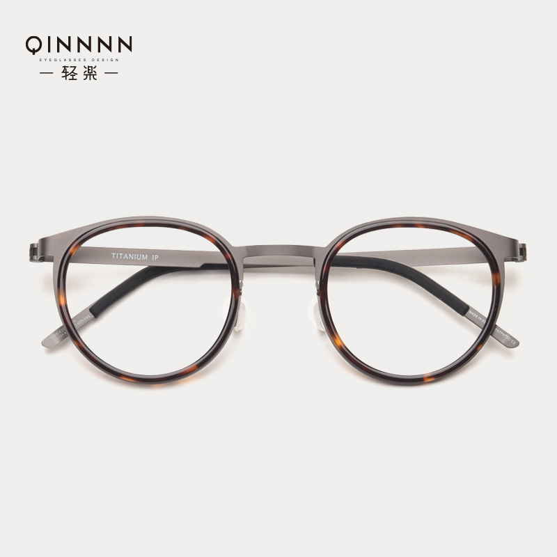 Tortoiseshell retro round frame glasses Jiang Wen the same pure titanium myopia glasses frame Ultra-light power glasses frame myopia