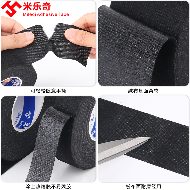Car flannel tape wiring harness, high temperature, sound insulation, silent noise reduction, super-adhesive electrical insulation tape, black tape, dust elimination, central control, car door, car body friction, abnormal noise, wiring harness tape