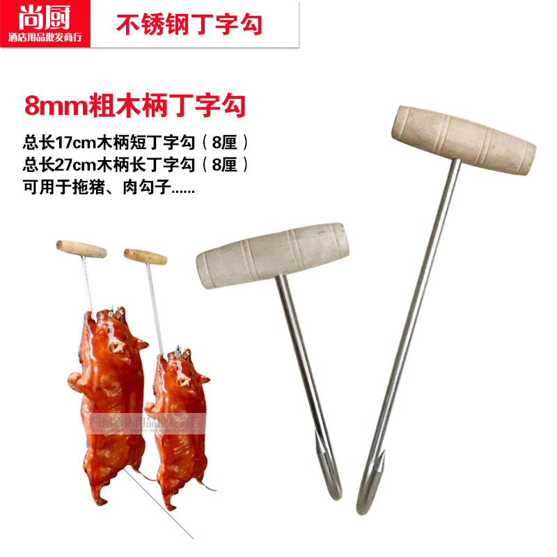 Stainless steel tinted crochet wood handle tinted with hook pork ticking roast duck hooked up to butchery chayat