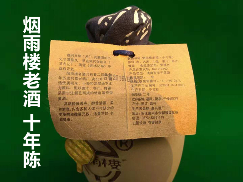 Jiaxing specialty yellow wine tobacco yulou old wine ten years old handmade ten years old yellow wine 500ml bottle production yellow wine