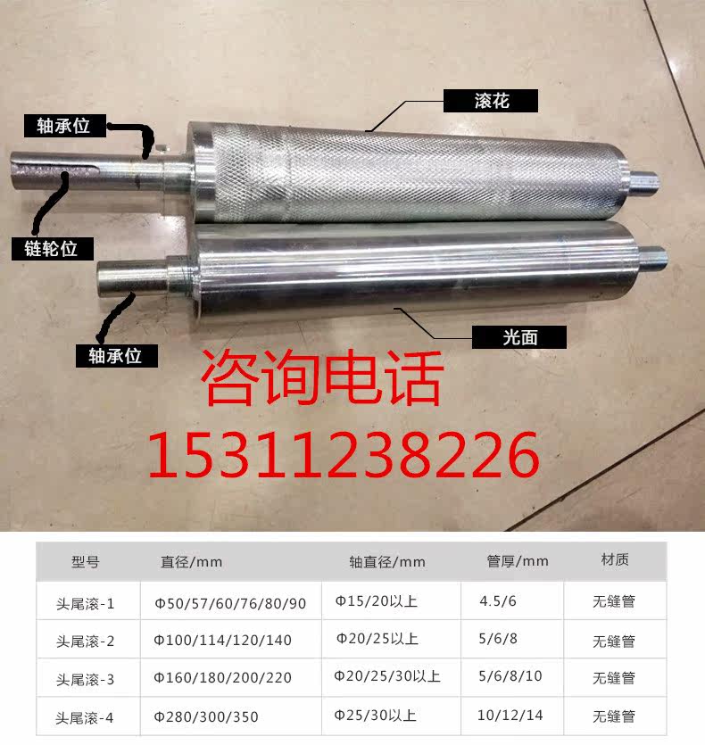 Roller head tail wheel main passive bag adhesive embossing stainless steel galvanized conveyor roller-in-roll custom