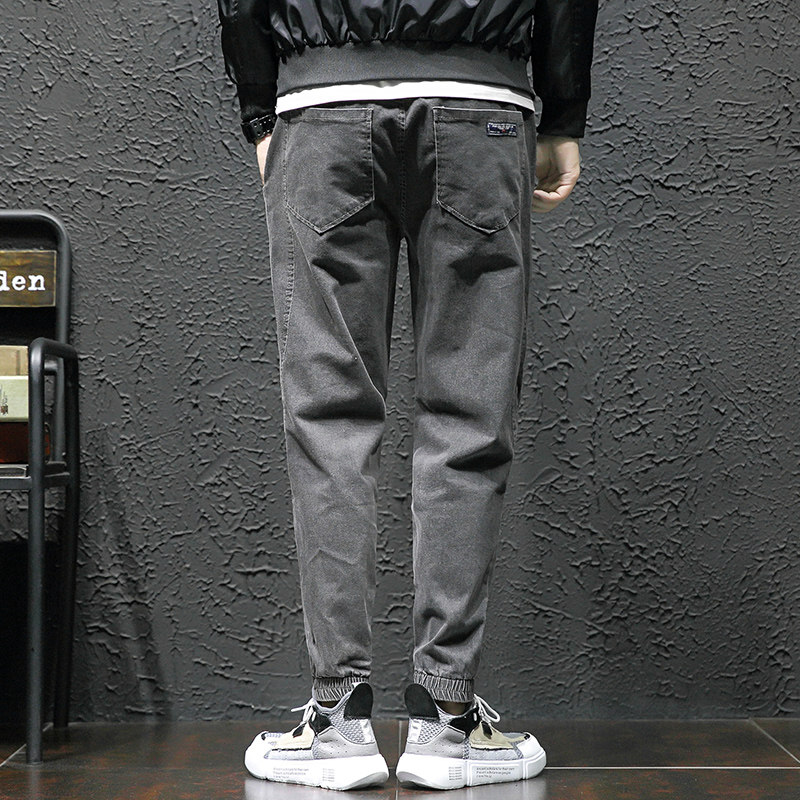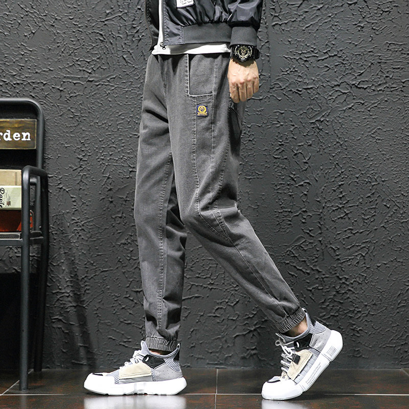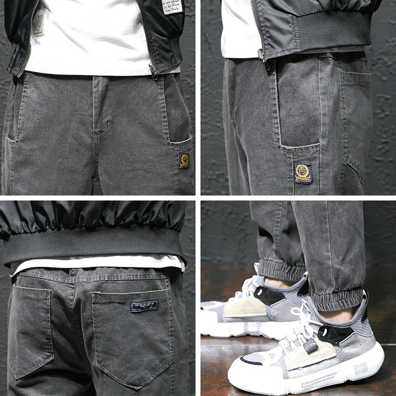 Men's jeans Chauffles casual bunches of Korean versions trendy long pants handsome and loose tooling pants with ruffles.