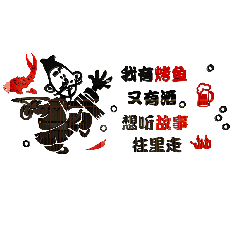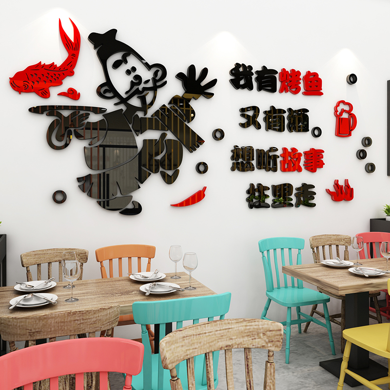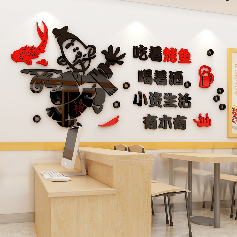 Creative funny text grilled fish shop wall decoration restaurant restaurant glass door stickers background wall decoration wall stickers