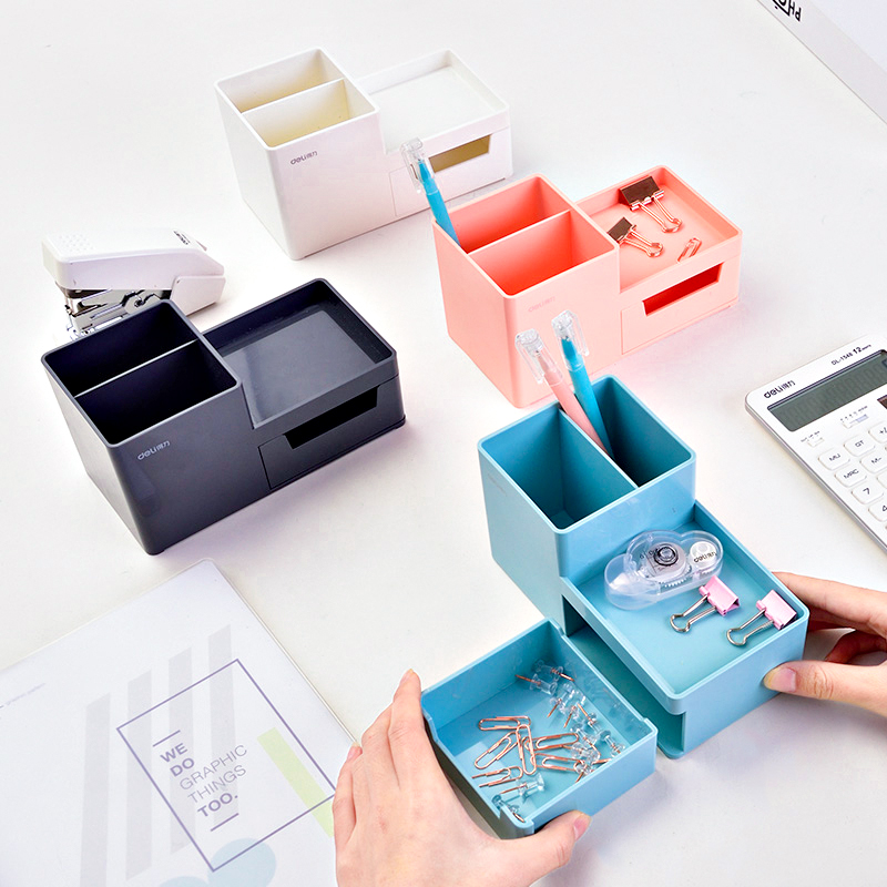 Deli multi-function pen holder Japanese desktop exquisite creative stationery storage box rack for primary school students children's office high-end supplies ins Simple modern Nordic large capacity pen barrel net red ornaments