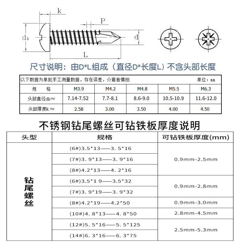 M3 M3 5M3 5M3 2M4 2M4 5M6 5M6 3 5M6 stainless steel 410 disc head round head cross drilling tail screw dovetail nail-Taobao