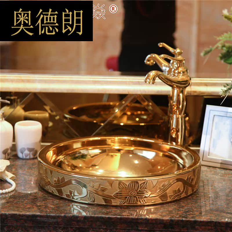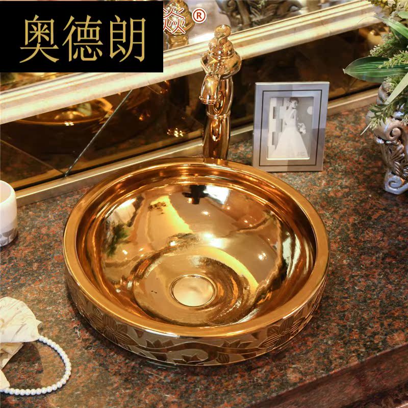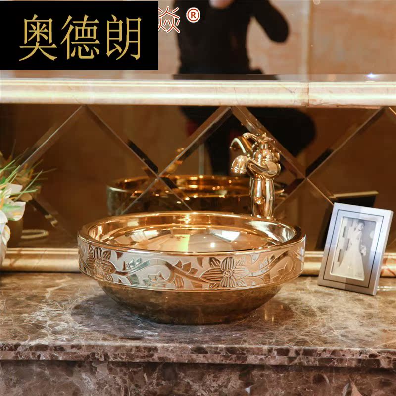 Alderang European-style ceramic semi-inlaid wash basin dressing room large counter basin home art basin home basin gold