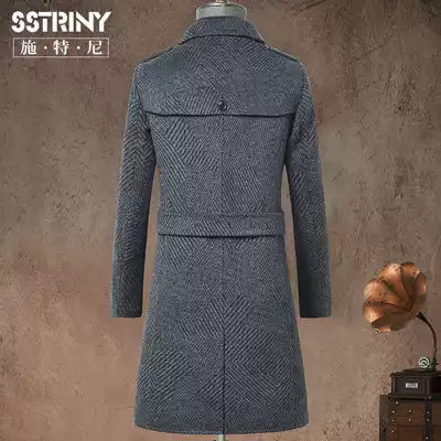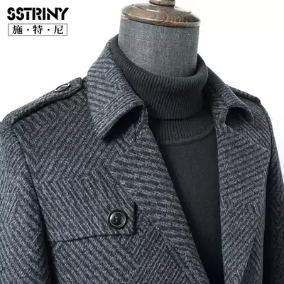 Sturney autumn and winter men's tweed coat lapel slim wool coat woolen coat