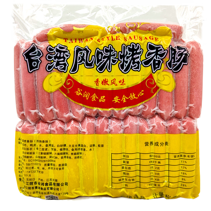 Commercial Taiwanese style grilled sausage hot dog sausage 1.8kg*10 packaging hot dog sausage grilled sausage whole box of grilled sausage