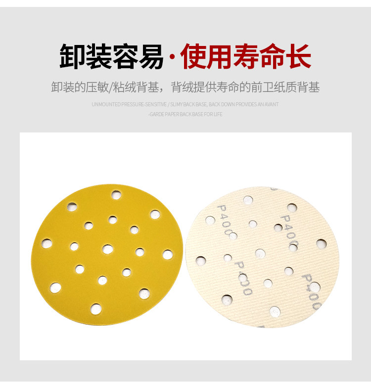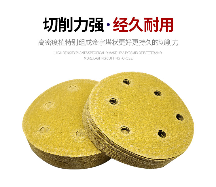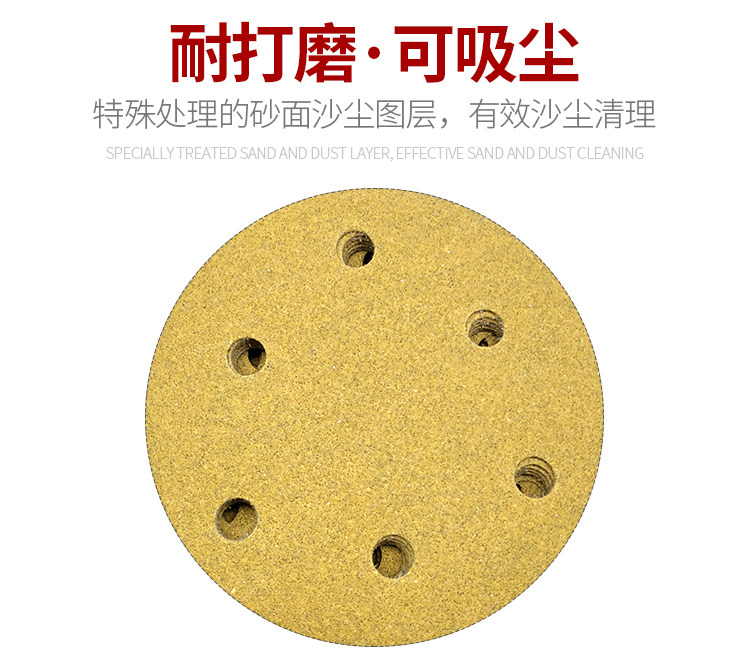 Self-adhesive flocking sandpaper sheet 5 inches 6 holes round imported yellow sand sandpaper back velvet vacuum dry sandpaper