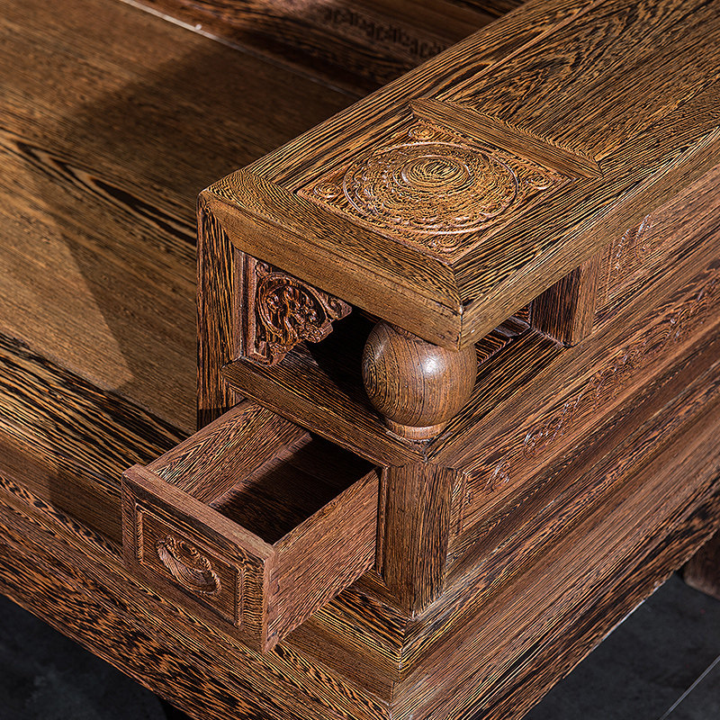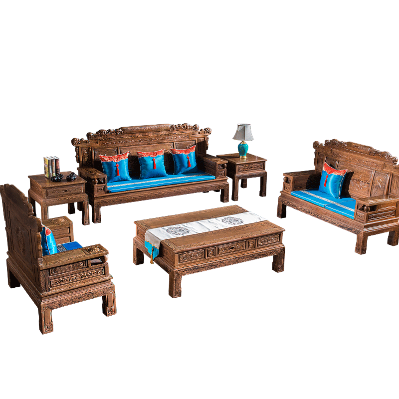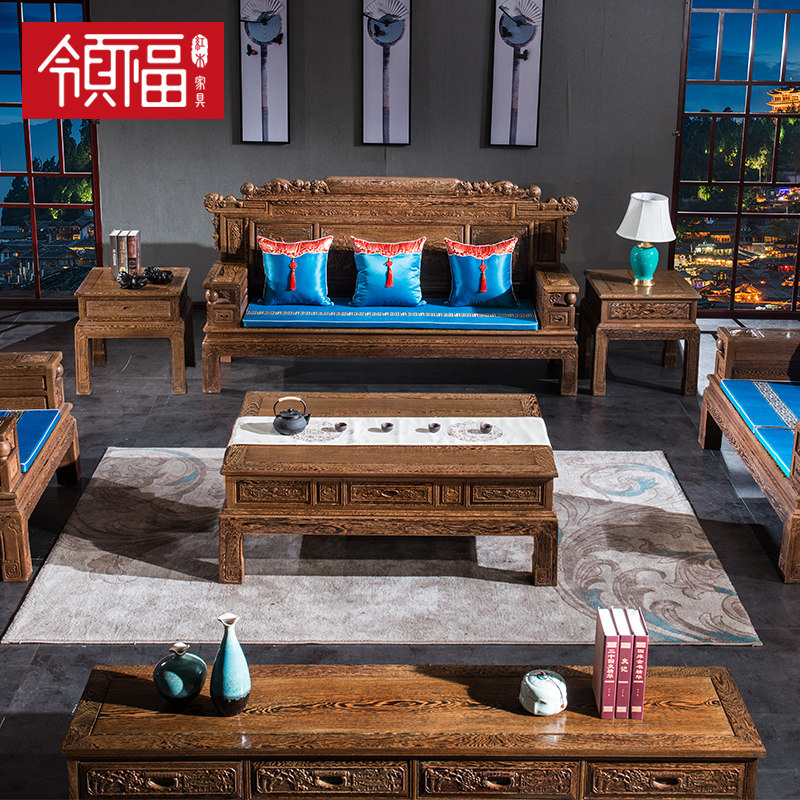Lingfu mahogany all solid wood money rolling new Chinese style African chicken wing wood sofa combination antique living room package