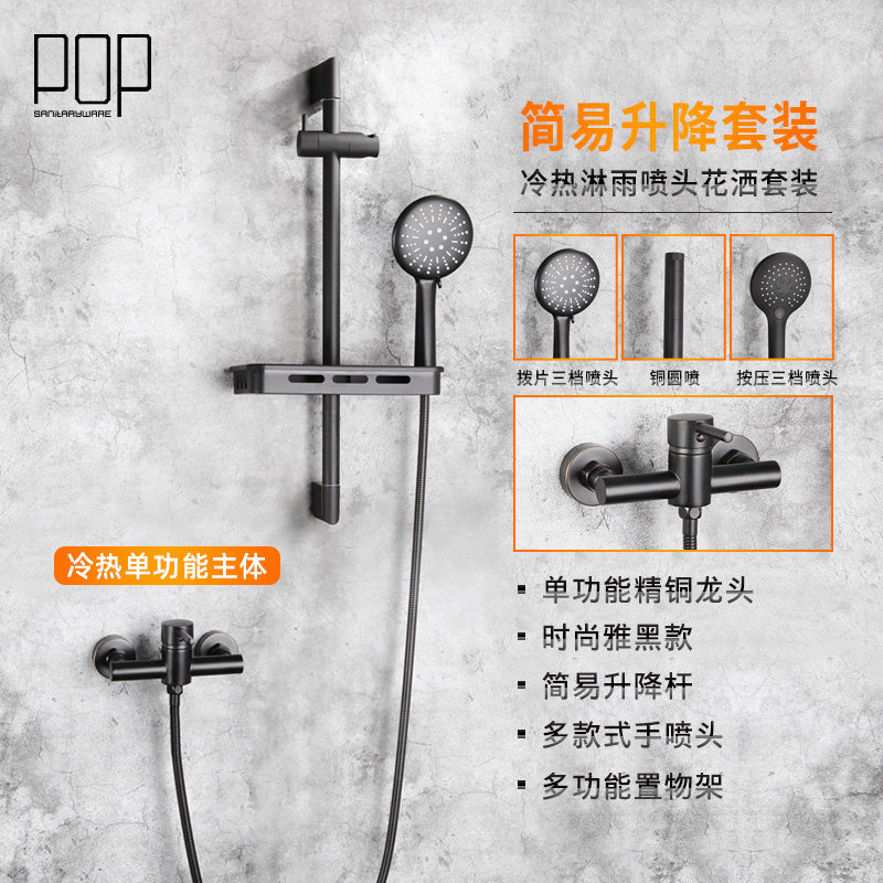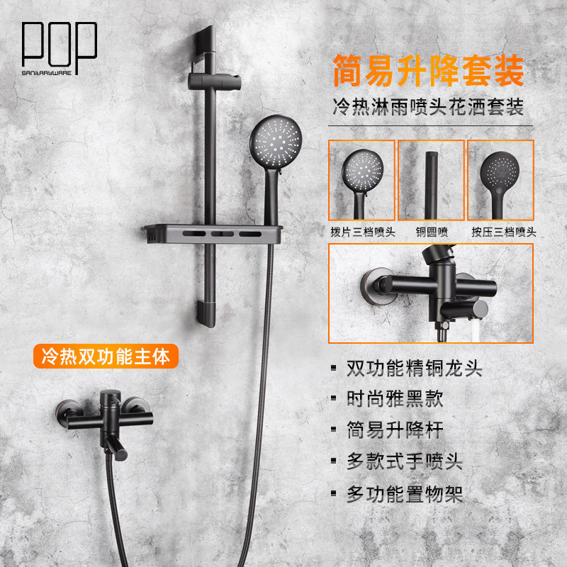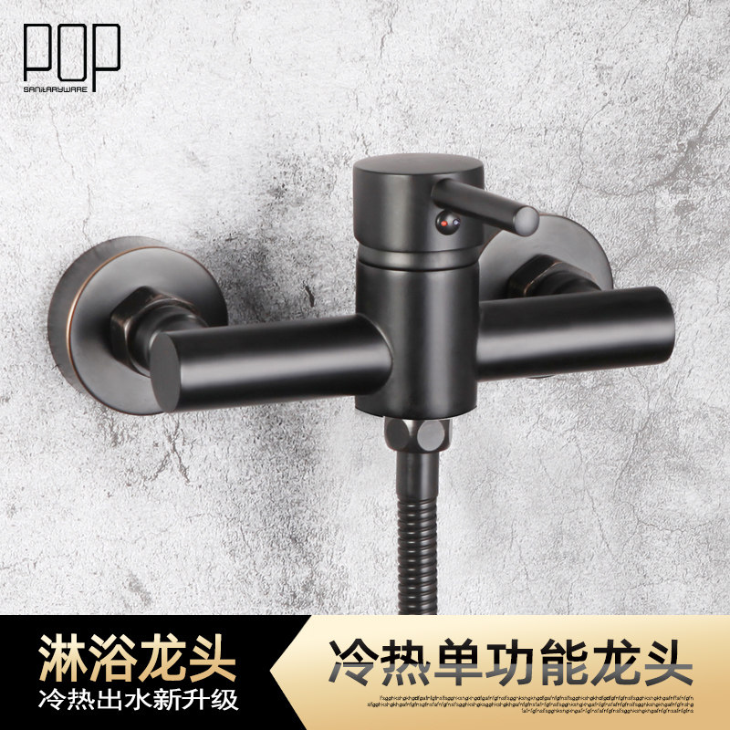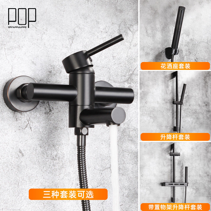 POP hot and cold bath faucet Black simple shower shower kit Bathroom surface-mounted mixing valve triple faucet