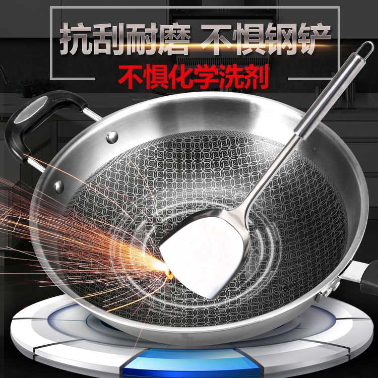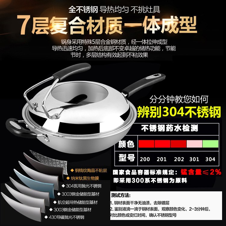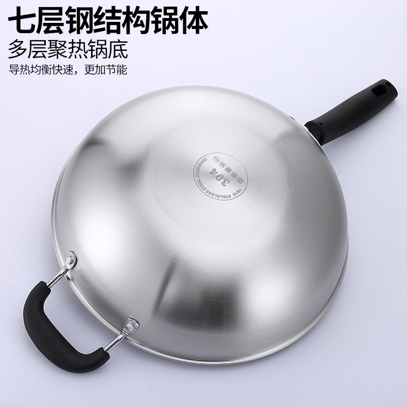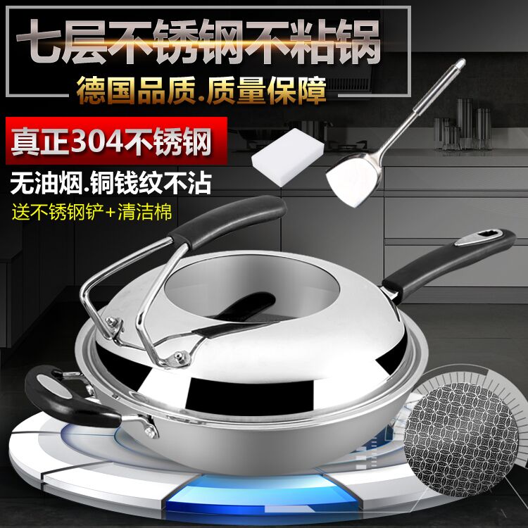 German fume-free non-stick frying pan wok 304 stainless steel household multi-function cooking pot Induction cooker gas suitable
