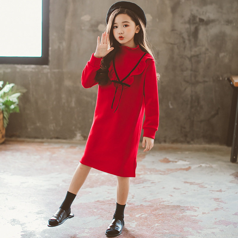 2019 Winter-style children's dress Children's New Year dress Girl with high collars and thickened red foreign princess warm dress