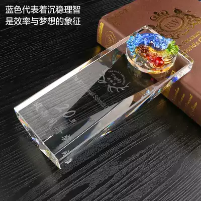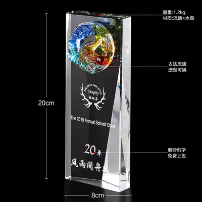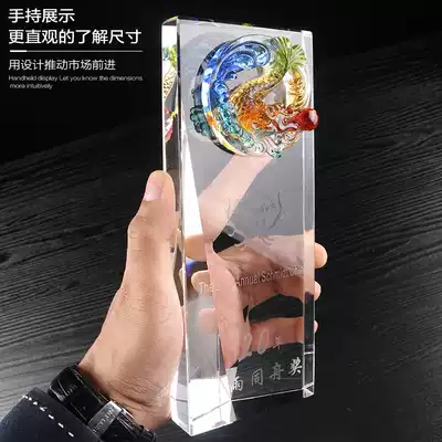 Crystal trophy custom glass prizes customized production lettering dealer authorized agent card outstanding employee awards