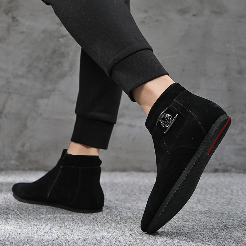 nubuck leather high tube casual leather shoes men's 2022 autumn and winter Korean version trend suede leather shoes black shoes men
