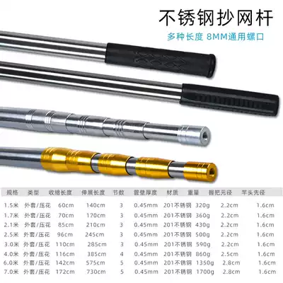 Stainless steel fishing net Rod nest Rod super hard harpoon sickle Rod thickened 3 meters 4 meters 5 meters fishing net Rod bare Rod 6