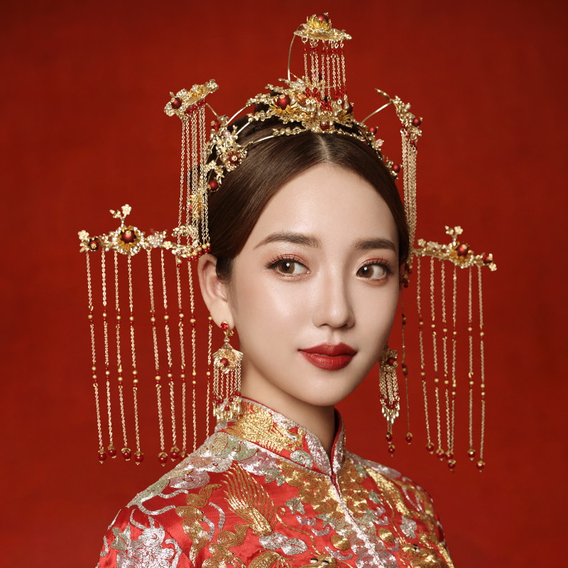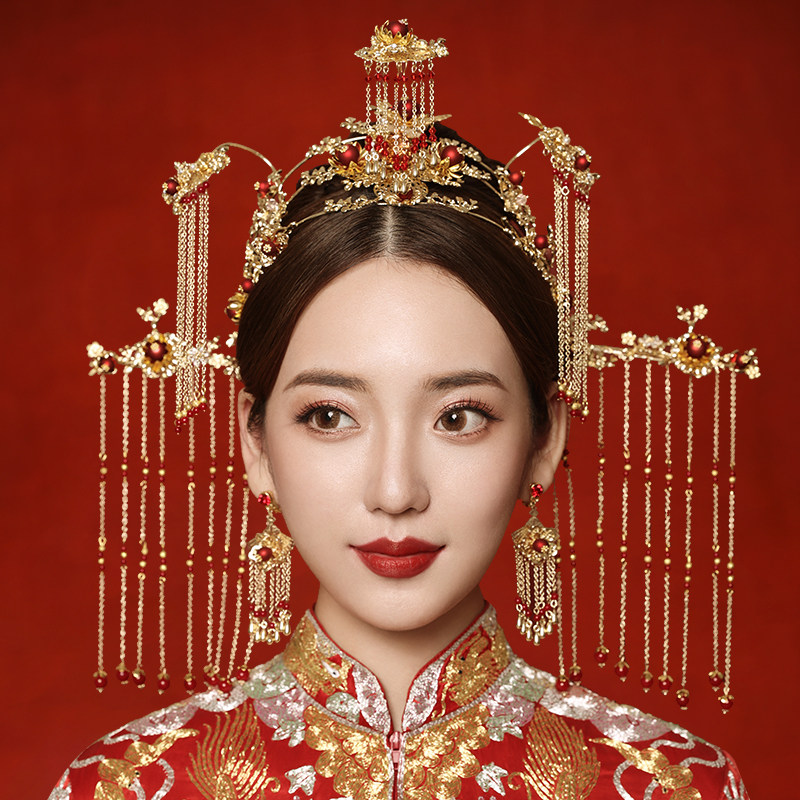 2021 new style Xiuhe bridal headdress Chinese ancient style Fengguan walking tassel atmosphere wedding Xiuhe suit luxury women