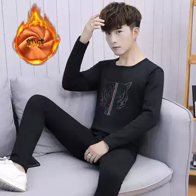 Winter heating pants, men's velvet thickened T-shirt, youth high school students, autumn clothes, sanitary pants, a set of tide