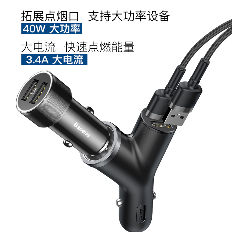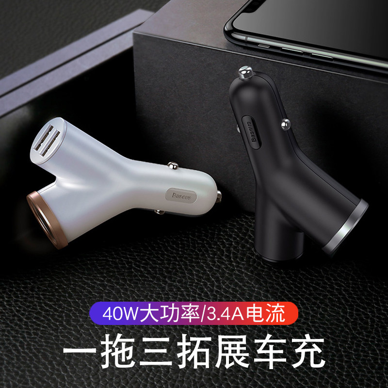 Beisi one drag three expansion car charger dual USB car charger cigarette lighter expansion port suitable for driving recorder vacuum cleaner air purifier charging multi-function plug 40W