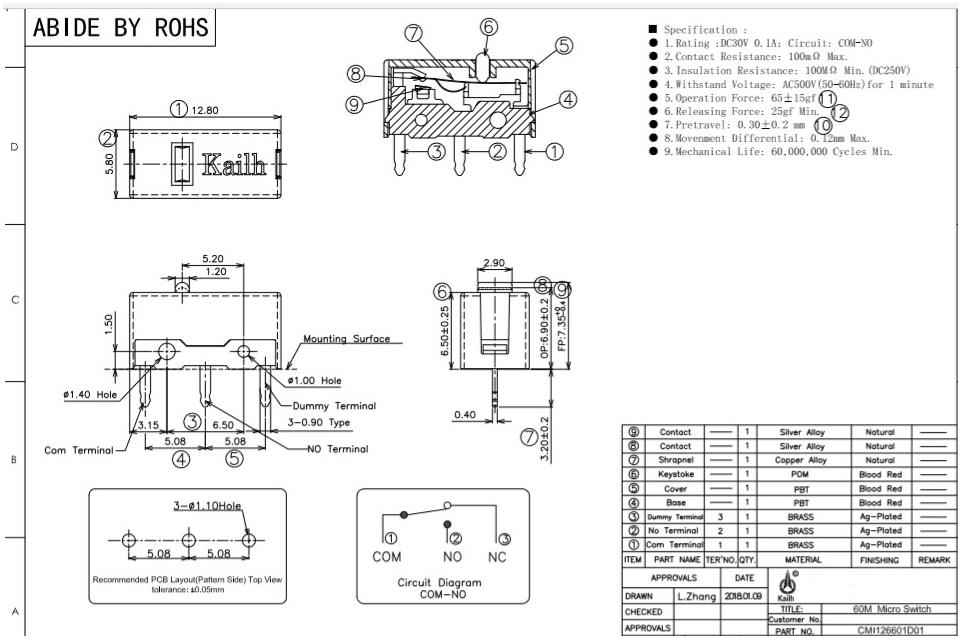 kailh Red Dot Kaihua Red Shell Mouse Micro Switch GM Game Key Key Gold Alloy 60 million