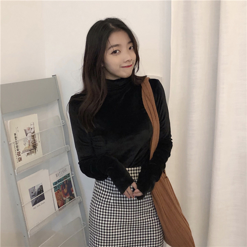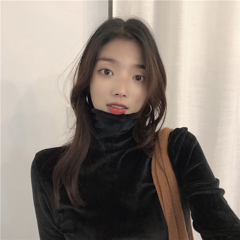 Body high collar velvet beating undershirt woman winter new pure color 100 lap high collar tight elastic inner lap long sleeve blouse