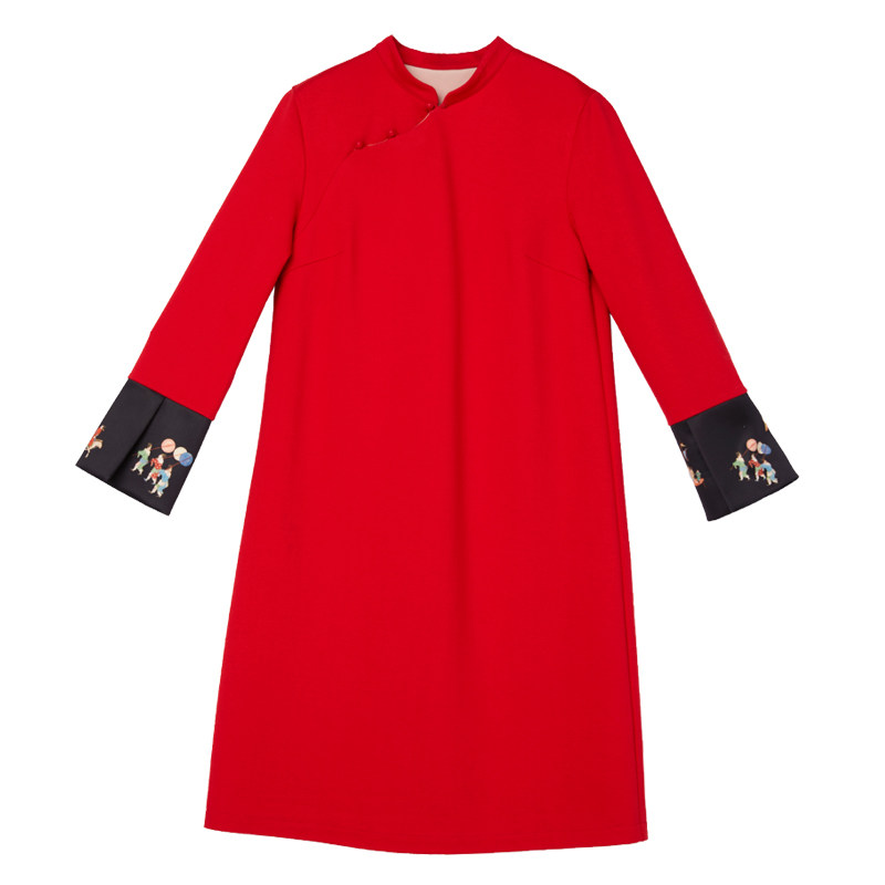 (Mustard Original) Weiyang Retro Chinese Red Standing Leader Mouth Printing Design Improved Dress Cheongsam Dress