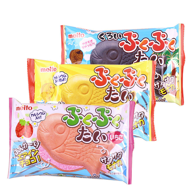 Japan imports meito famous chocolate taste fish - shaped fish - shaped piece cracked strawberry biscuits