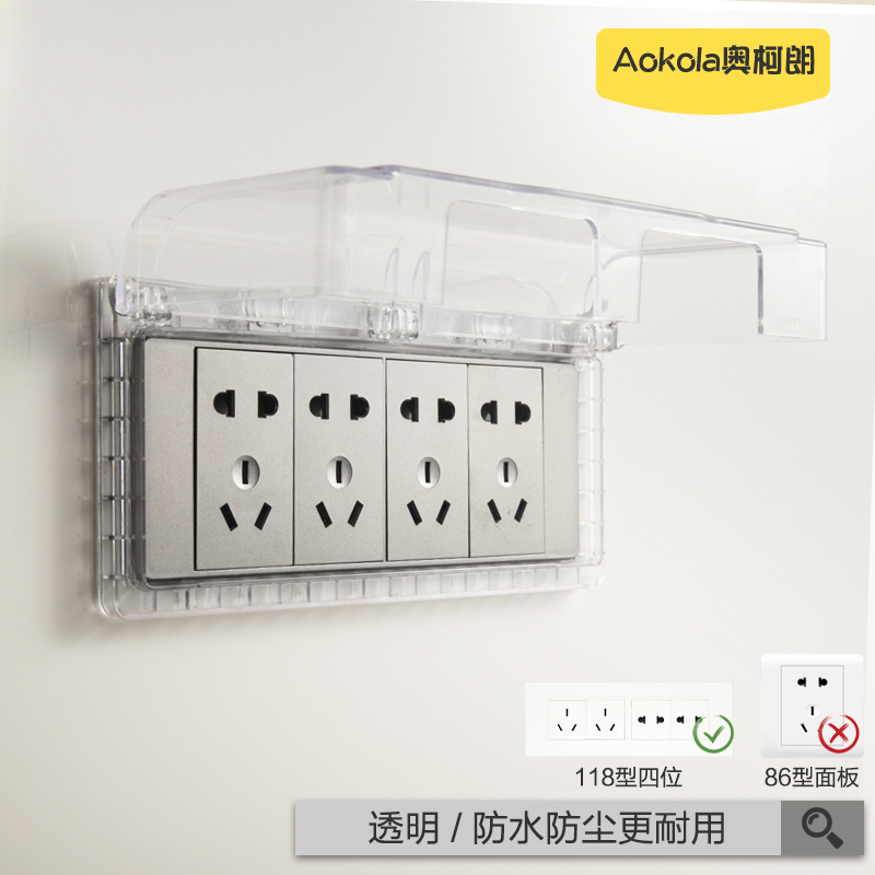 Type 118 four-position socket waterproof cover Transparent adhesive waterproof box Self-adhesive type 118 12-hole socket splash box