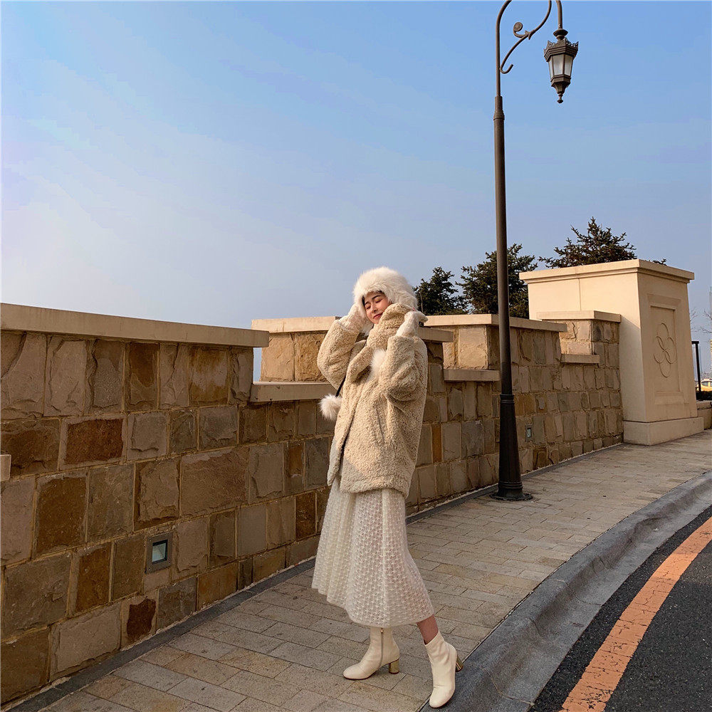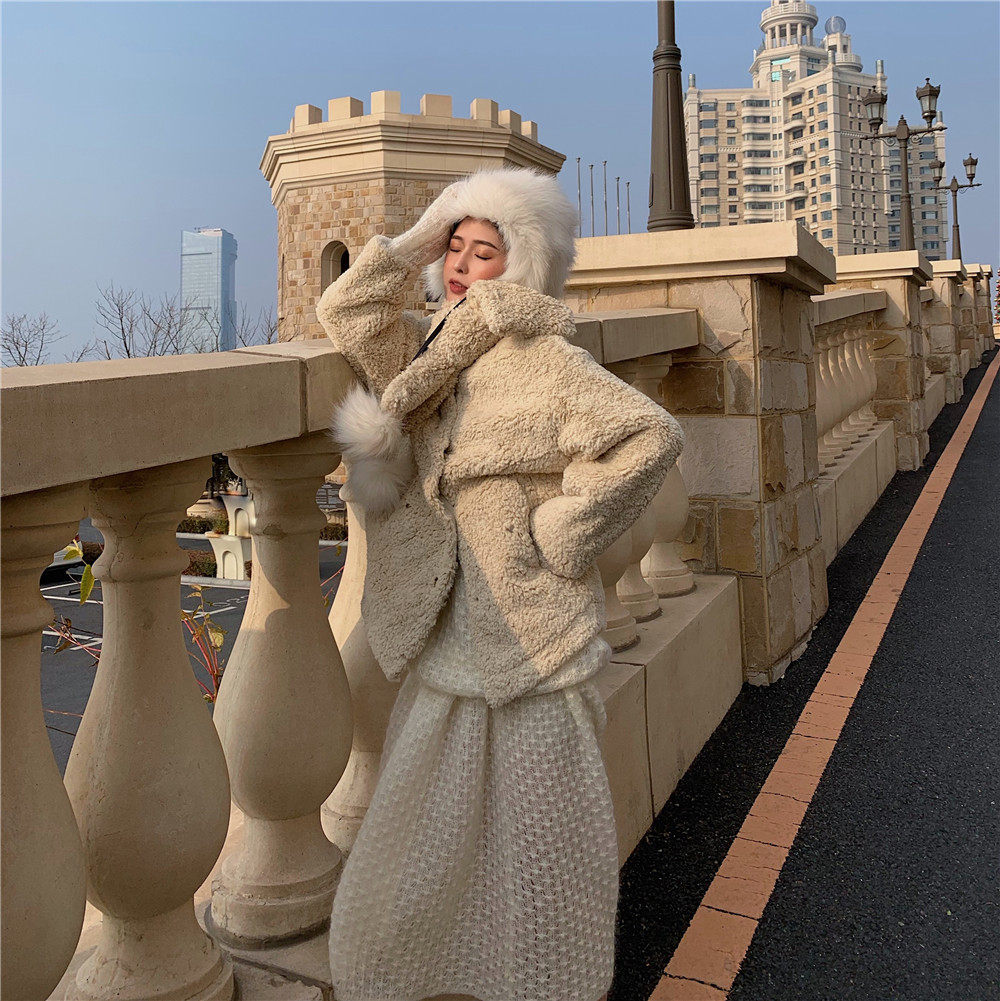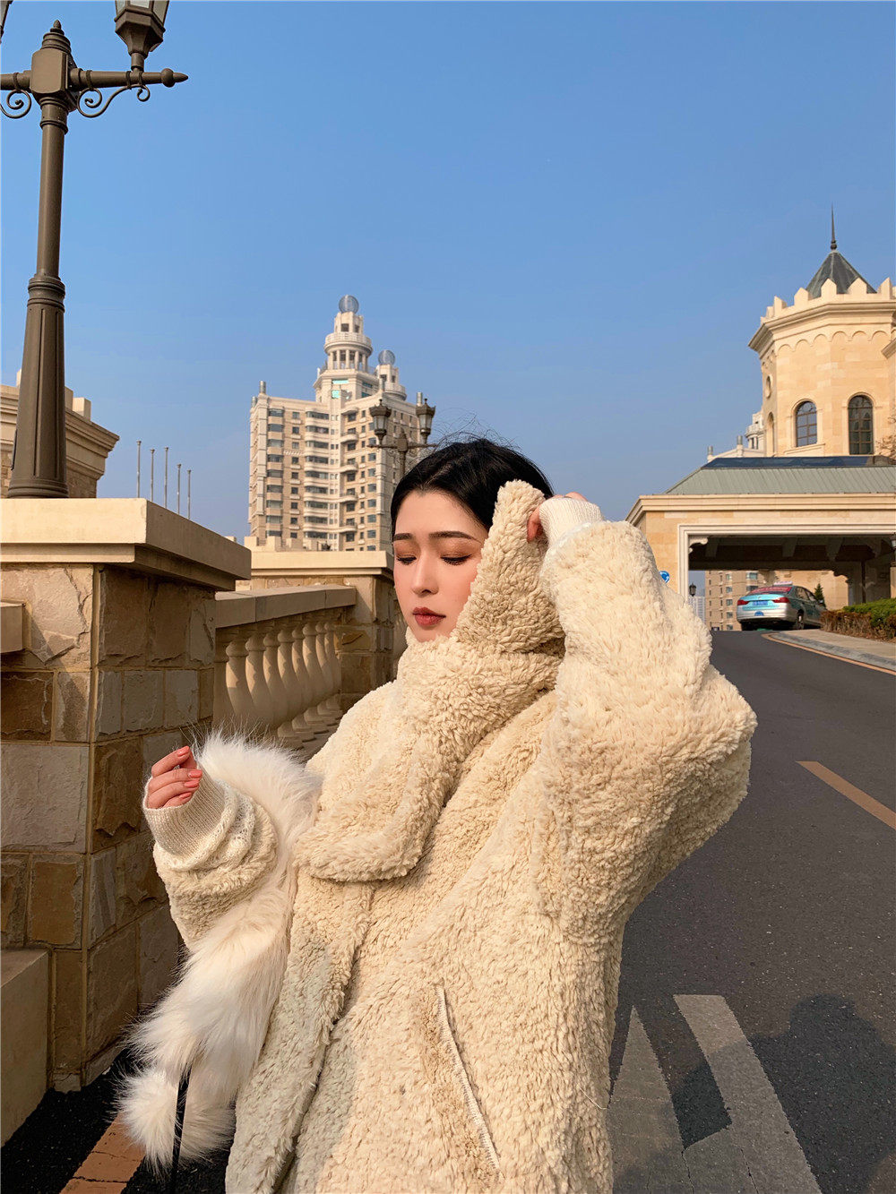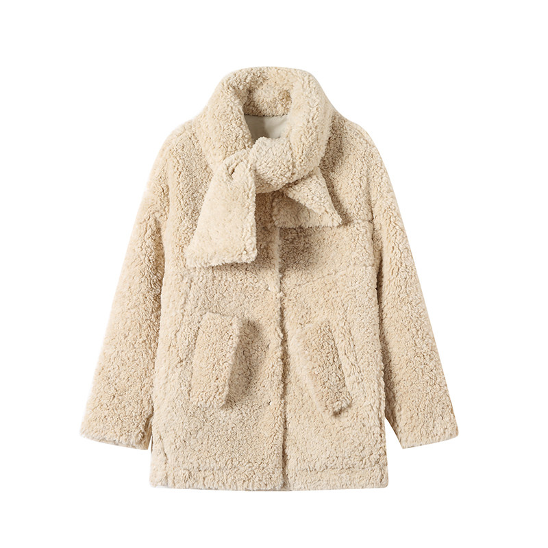 WALKINDARK] buy the softest and most comfortable long-pile grainy lamb wool scarf jacket