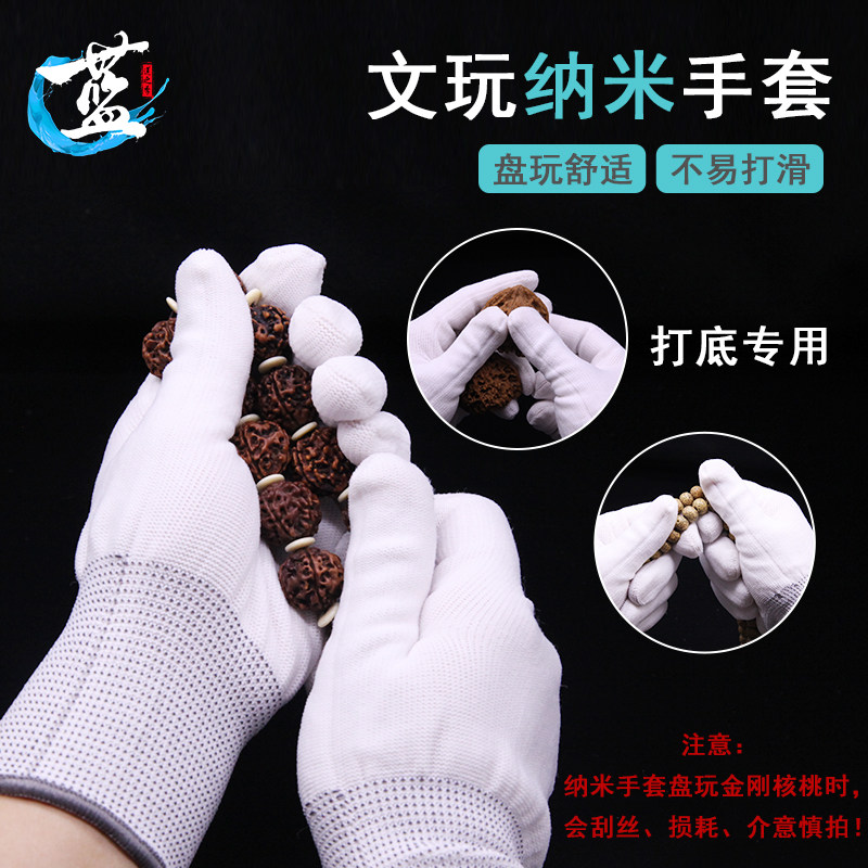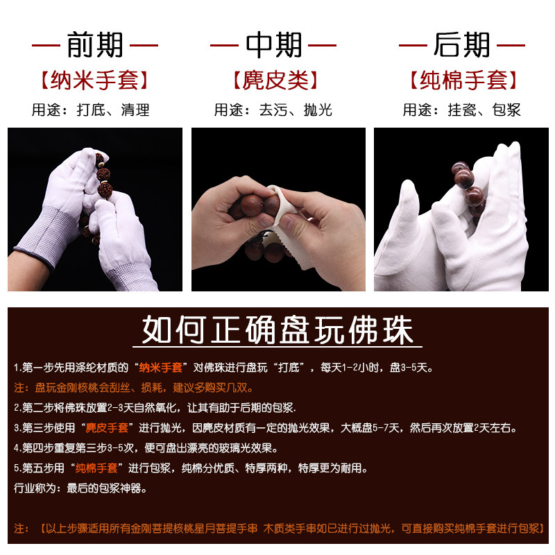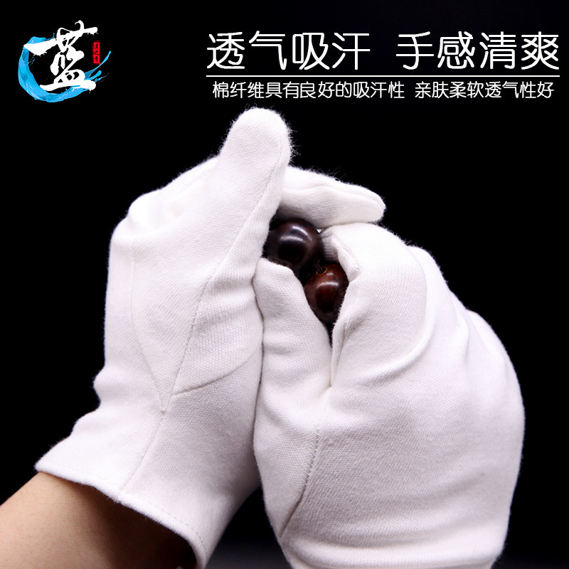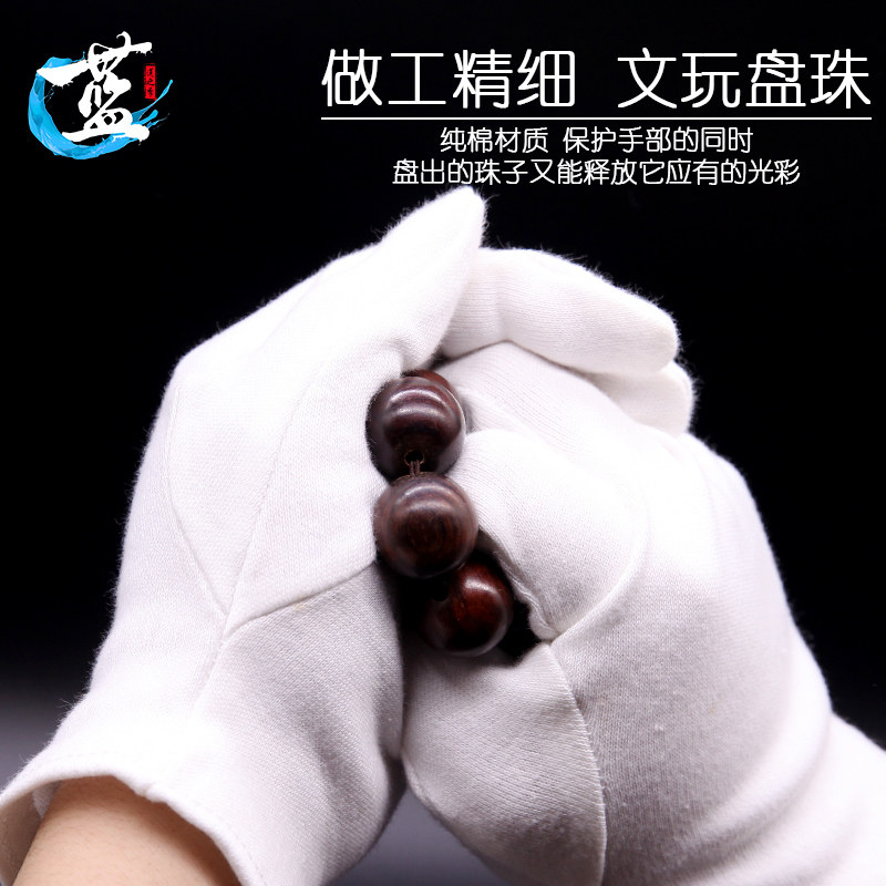 Text Play Gloves Pure Cotton Thickened Buddha Pearl Nanpan Pearl polished hanging porcelain ladle pulp to play white full cotton glove handstring