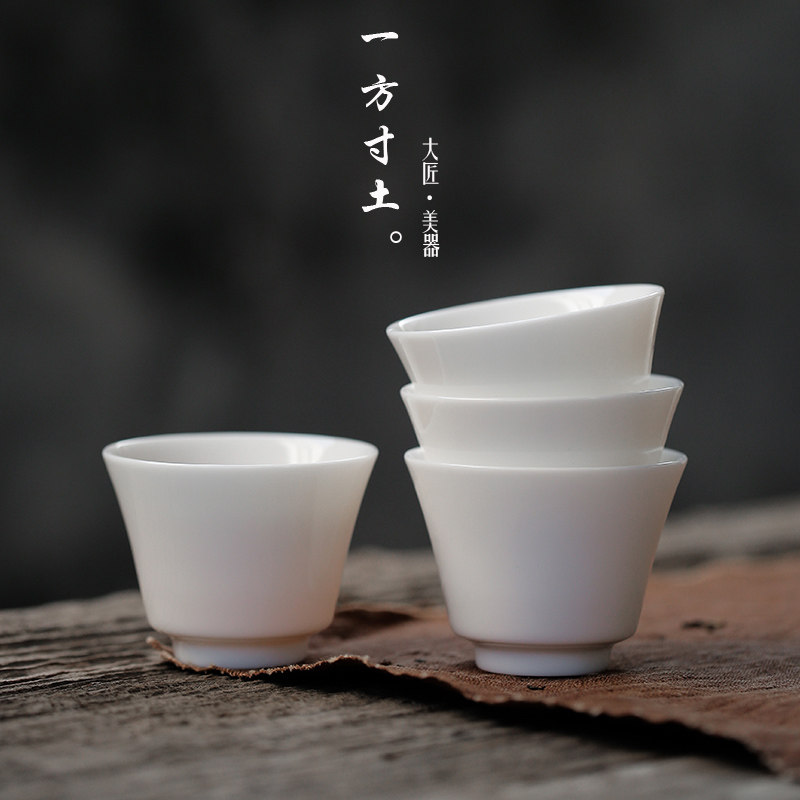 One inch of soil Dehua White porcelain personal Teacup Japanese tea set Sheep fat Jade tea master tea cup Tea cup Water cup
