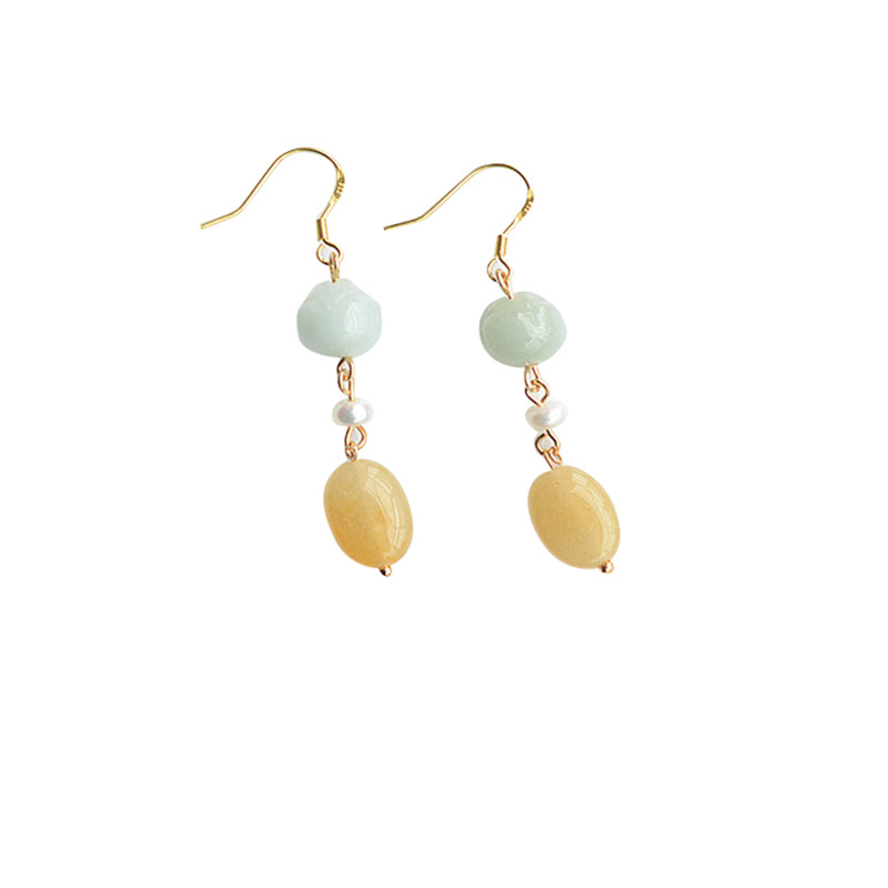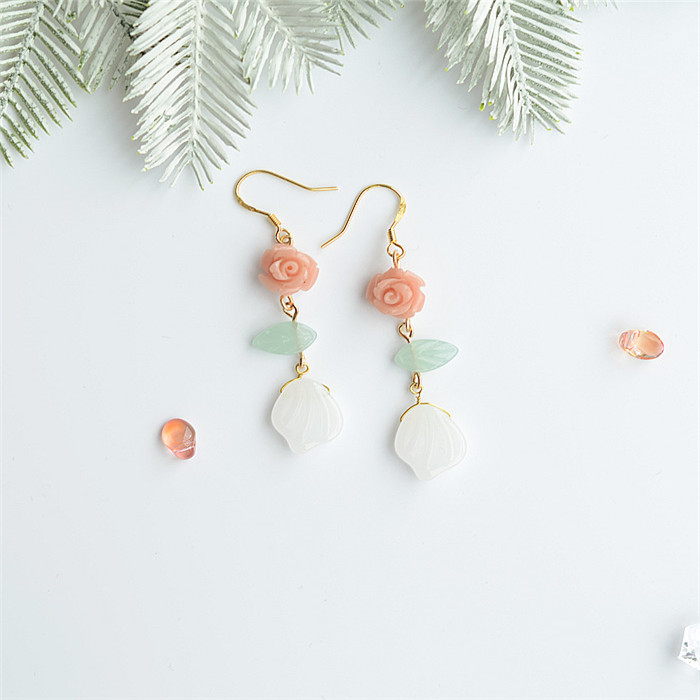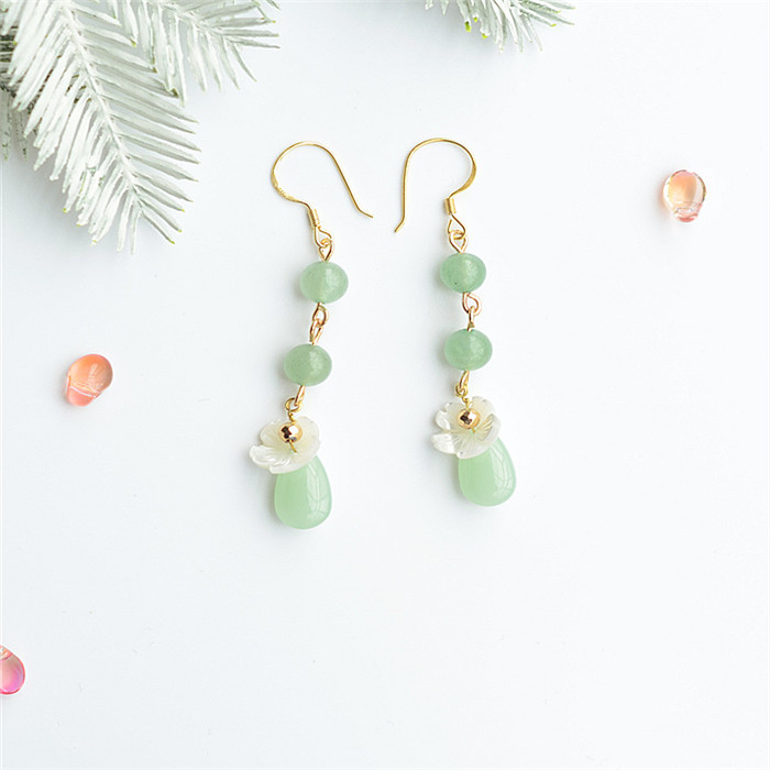 Jade Pearl Sterling Silver Plated Earhook Earrings Pink Flowers Sterling Silver Plated Earhook Earrings Green Dongling Water Drop Sterling Silver Plated Earhook Earrings