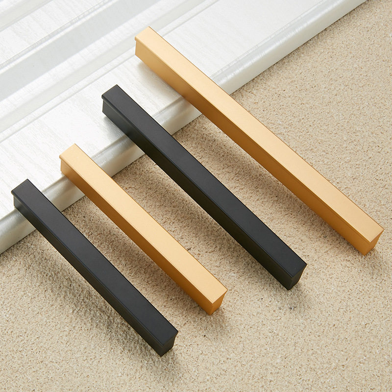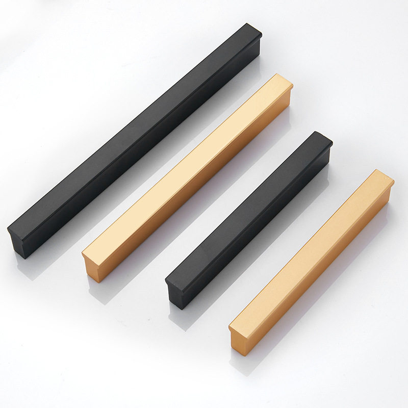 Aluminum alloy straight handle A shape aluminum handle Champagne gold overall cabinet drawer wardrobe door handle custom long hole distance