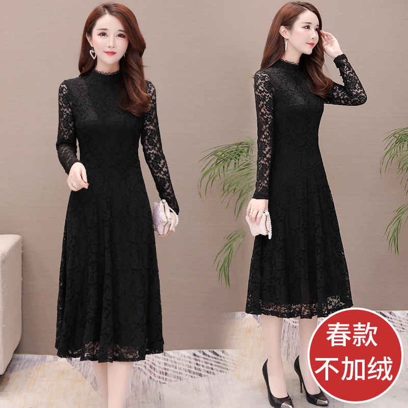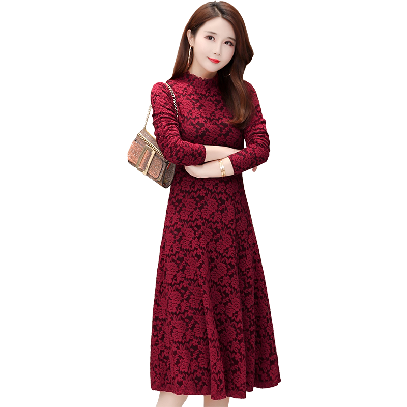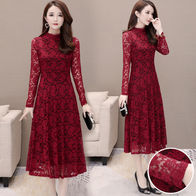 2022 autumn and winter new inner lap lace dress with feminine dress temperament plus suede thickened with a long dresses
