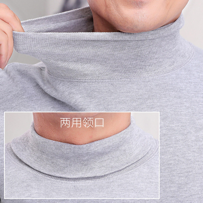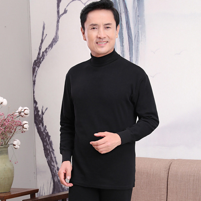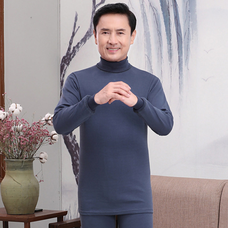 Middle-aged and elderly heating clothing men's double lapel turtleneck autumn clothes sanitary pants suit 100% cotton base thin pile pile