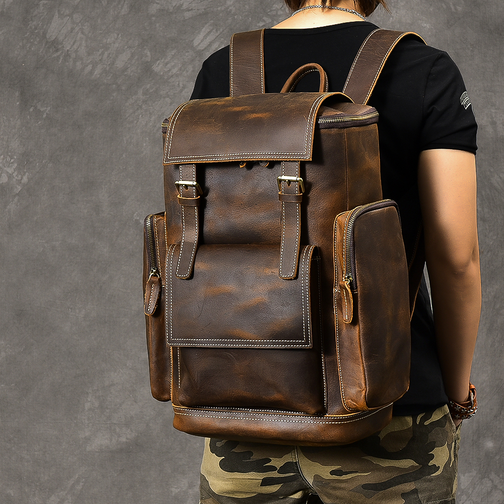 24 Street retro Madi Inn Wind Large capacity Men's double shoulder bag Bull Leather Nostalgia Travel bag T18
