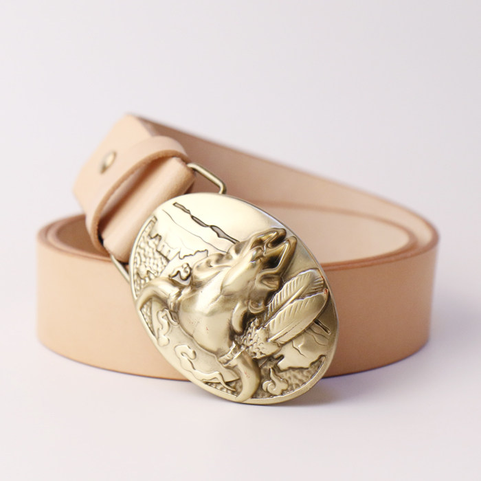 Zhang Kee Workshop New Products Italian Vegetable Tannic Leather Head Layer Cow Leather Screw Pure Copper Leather Belt Buckle Pants With Plate Buckle