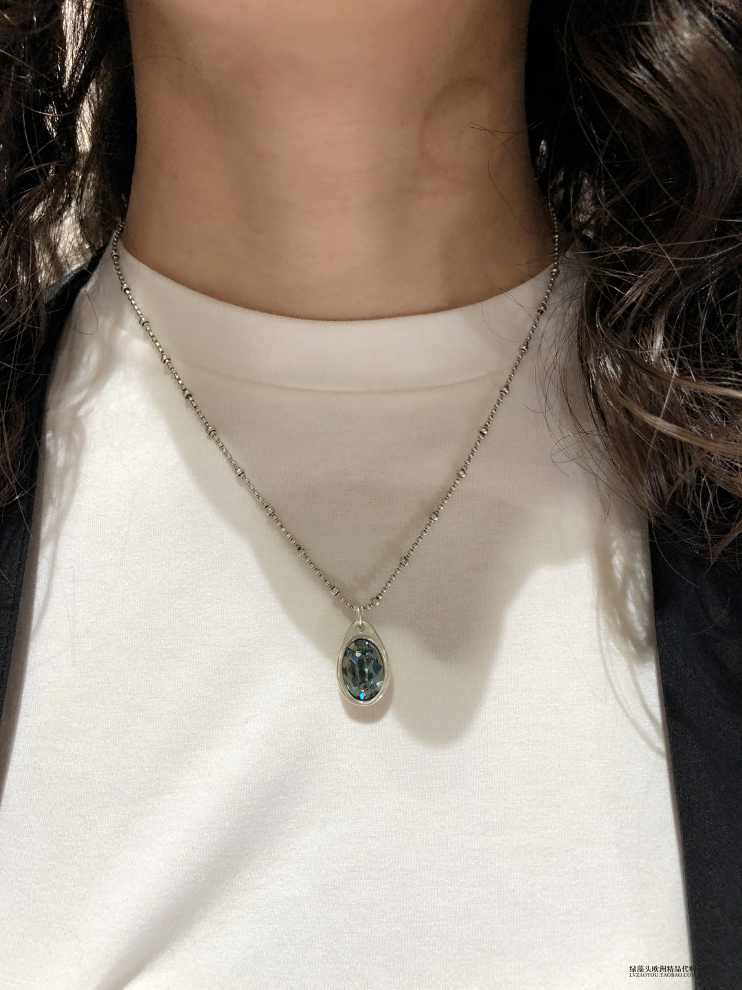 Spanish counter personality pure handmade tide brand UNO DE 50 simple water drop blue crystal bead necklace
