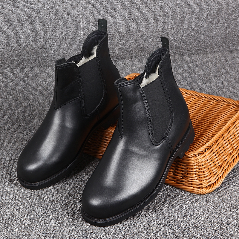 Winter classic retro English style Chelsea sheep fur one snow boots plus velvet cold warm cotton boots men