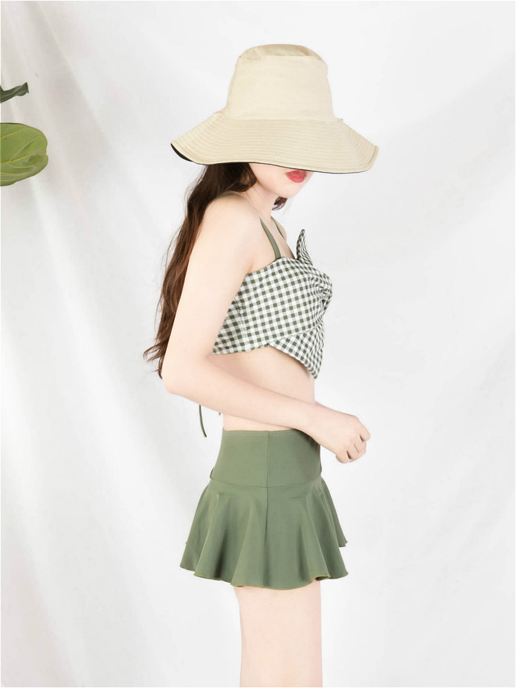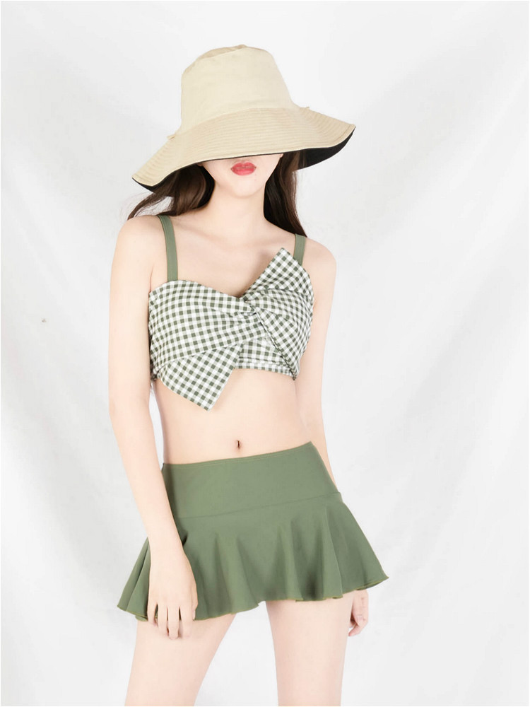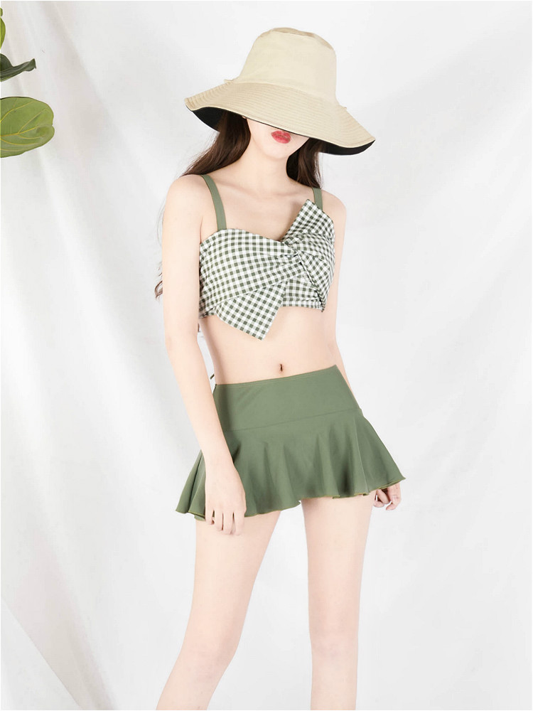 Grid control net red money 2021 new super-fairy bubble spa with slim and fragrant wind conservative student three sets of bathing suit women