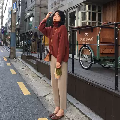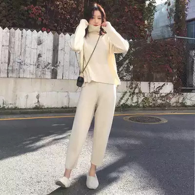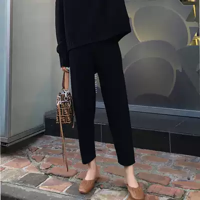 Knitted nine-point Haren pants women's autumn and winter thickened loose lazy casual small feet Luo Bu pants high waist slim grandma pants