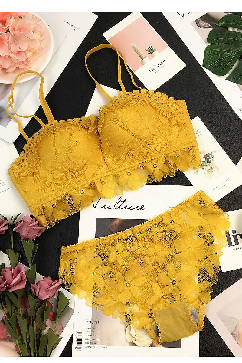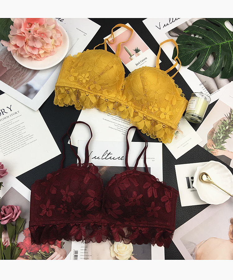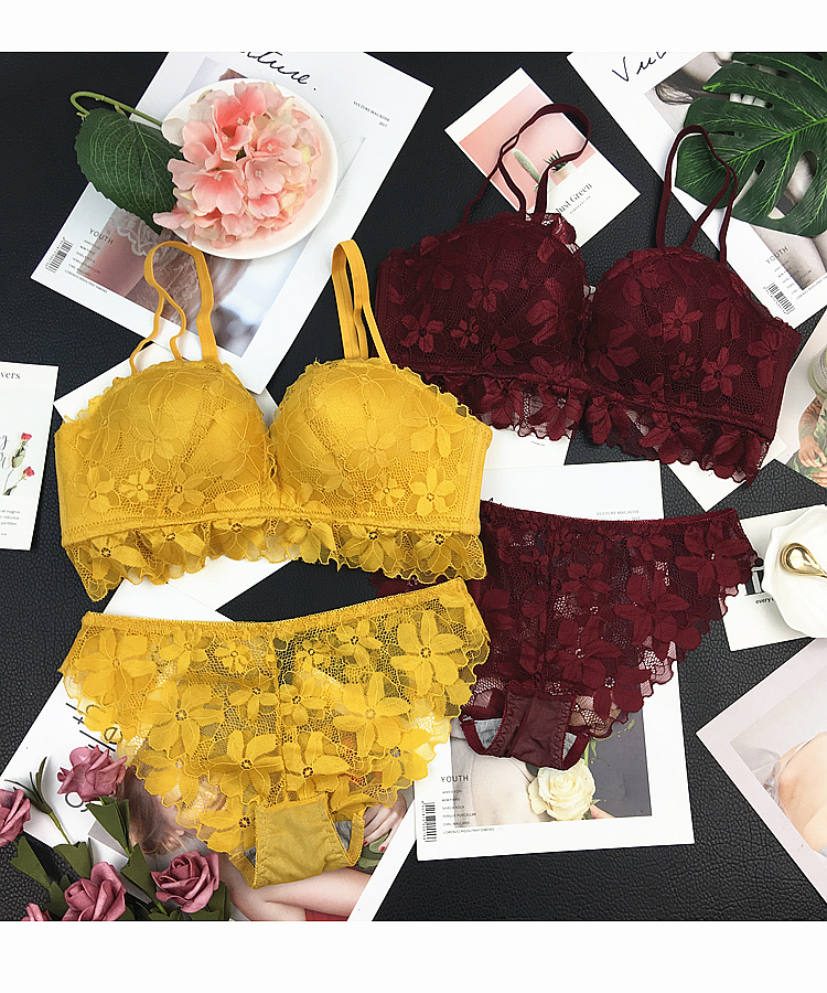Sweet Merise Wine Red Lingerie Lady Suit without steel ring Sexy goddess Small breasts gather on a bra thick