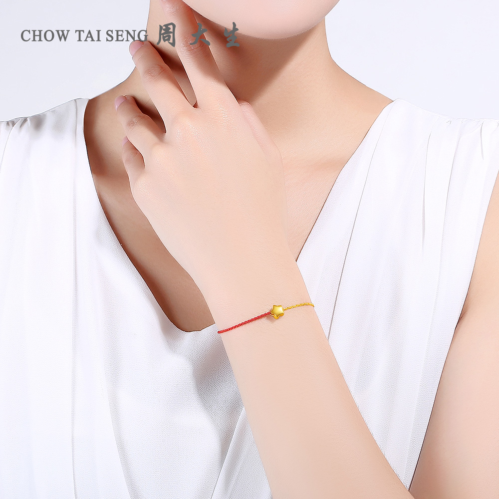 (Melting) (Melting) Gold Transfer Bead Bracelet Women's New Pure Gold Red Rope 3D Hard Gold Lucky Star