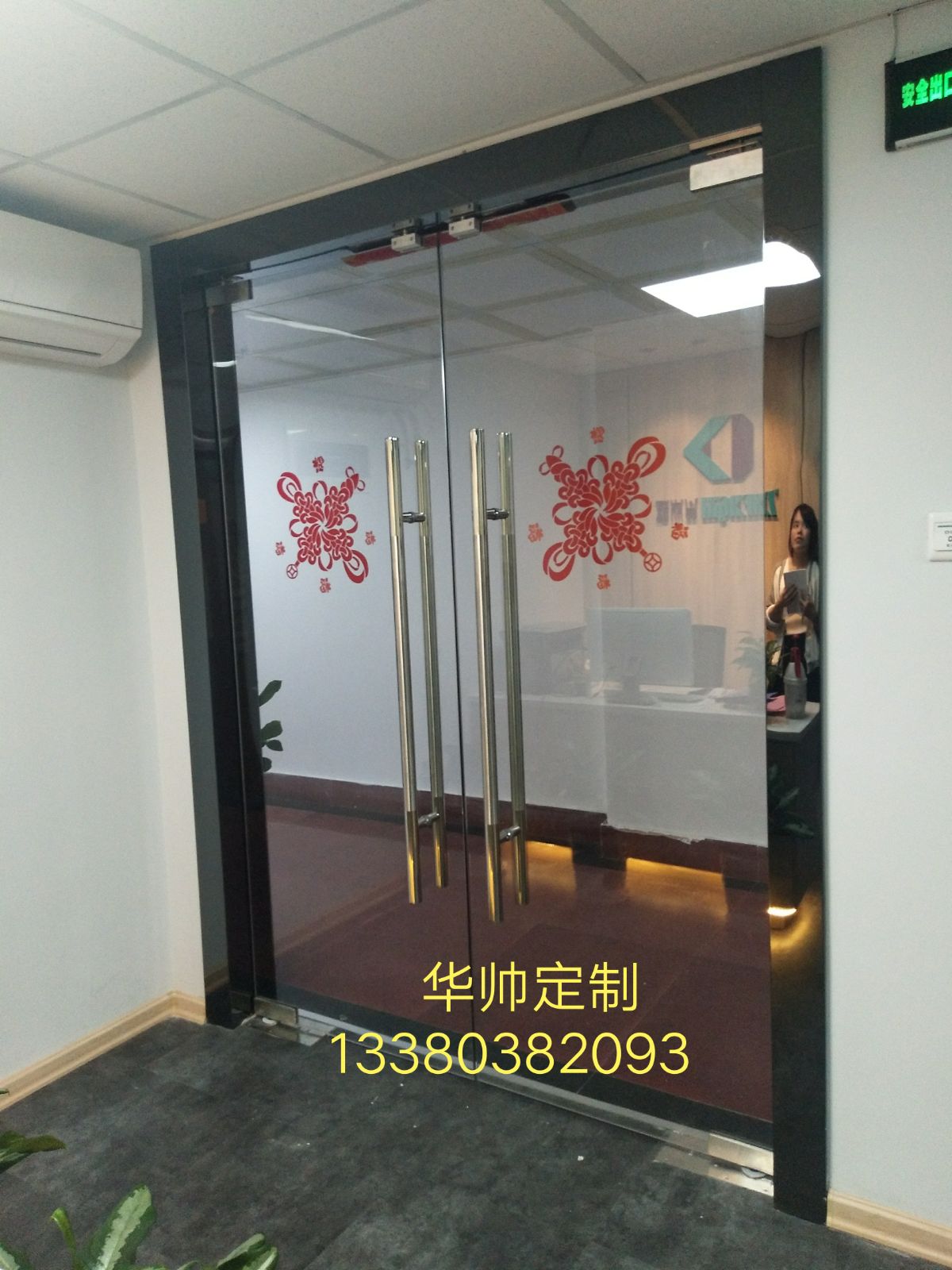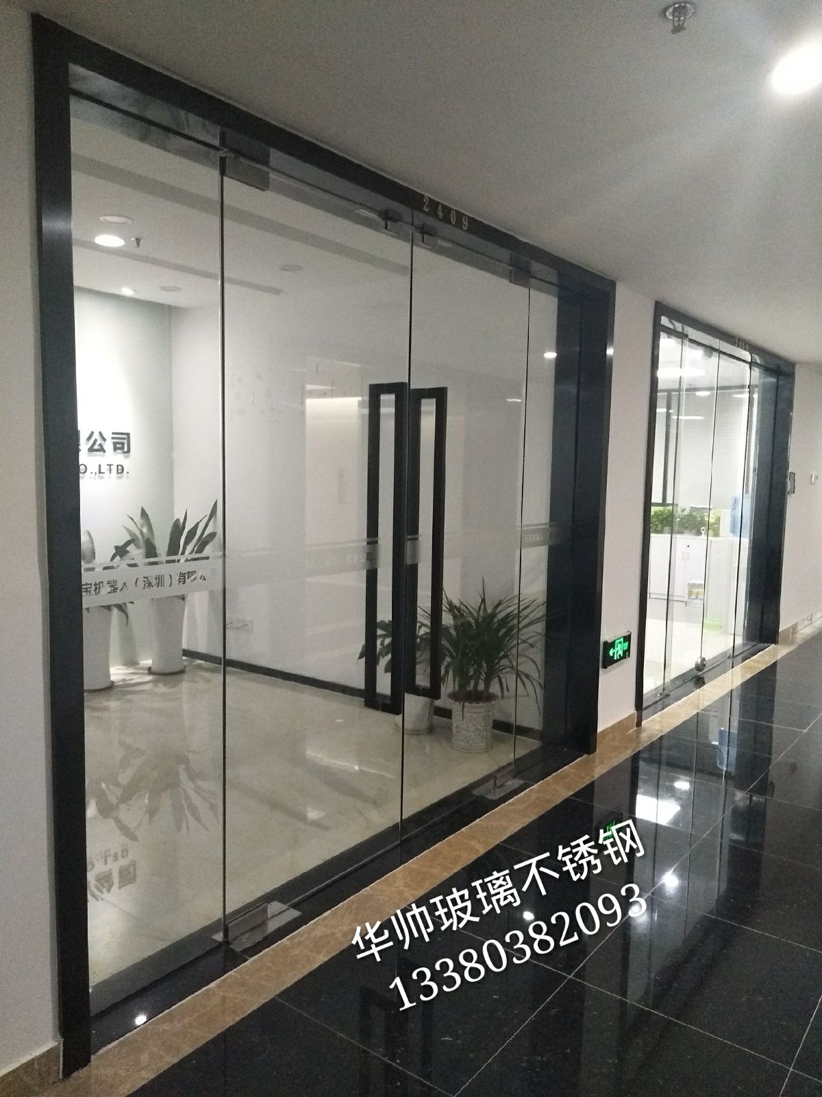Shenzhen custom glass door Buji office shop glass door card fingerprint password access control glass door installation