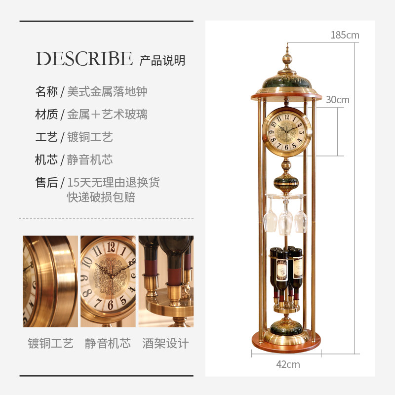 American watch and watch Living room Large number extravagant floor clock standing clock atmospheric sitting clock upright clock metal upscale pendulum clock