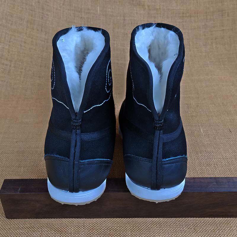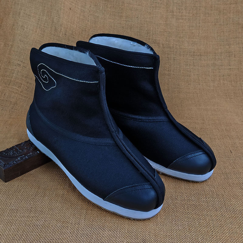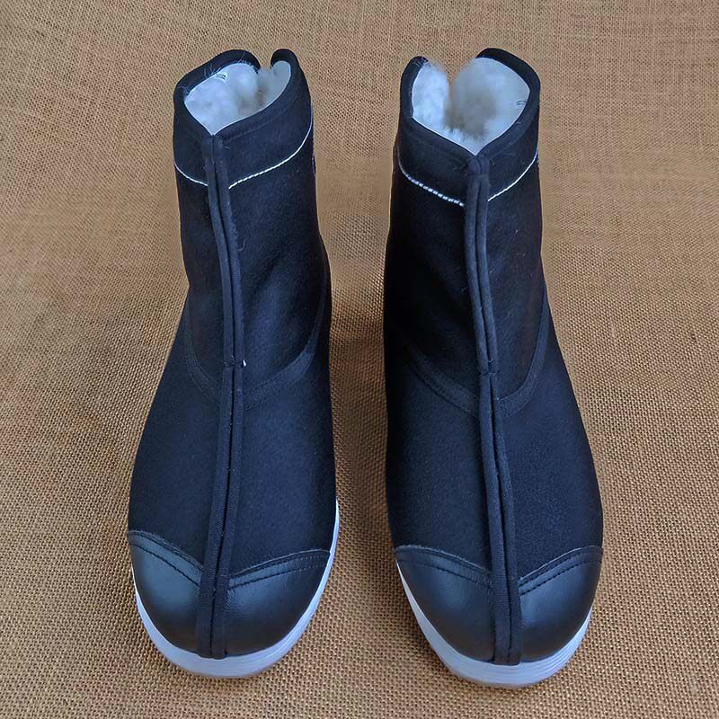 Old Beijing cloth shoes men's handmade Melaleuca bottom black dress woolen sheepskin wool one-piece winter warm with Hanfu short boots