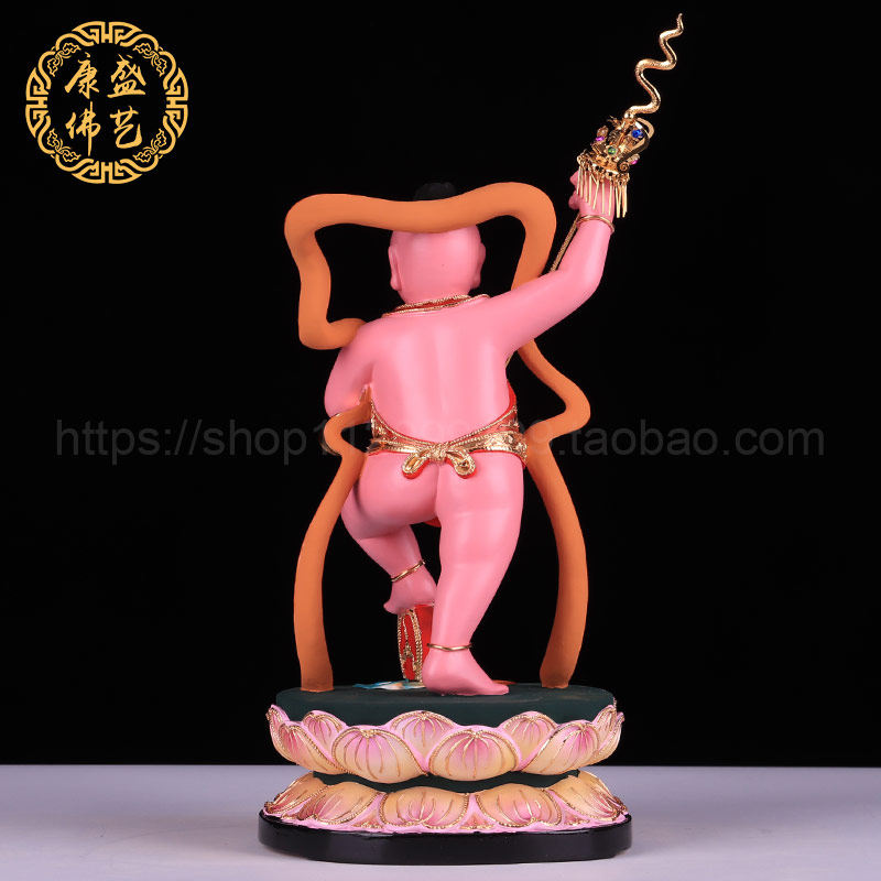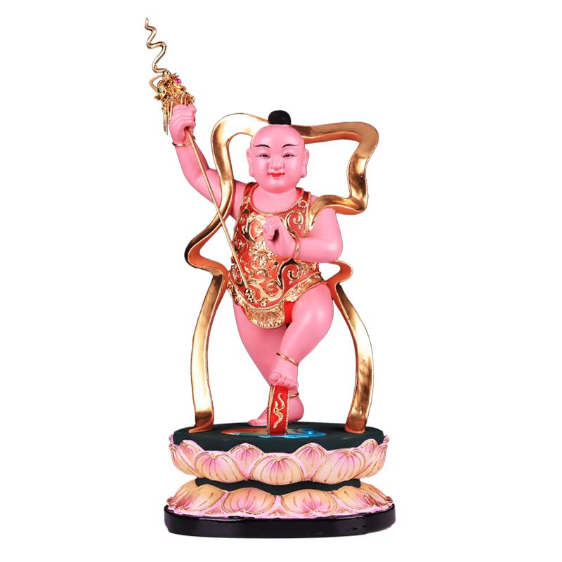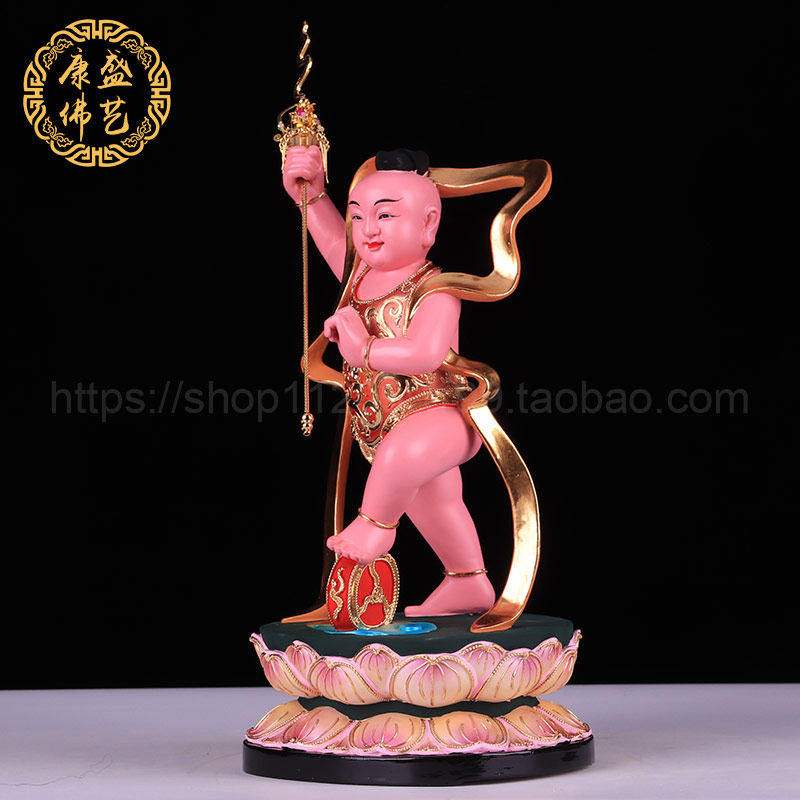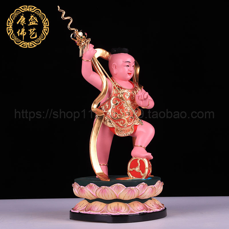 12-inch statue of Nezha three princes standing lotus prince camphor wood carving boutique Nezha three princes enshrined ornaments