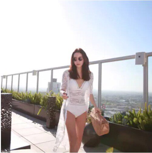 New beach jacket women's long-sleeved swimsuit women's bikini with white lace draped yarn holiday blouse medium and long version