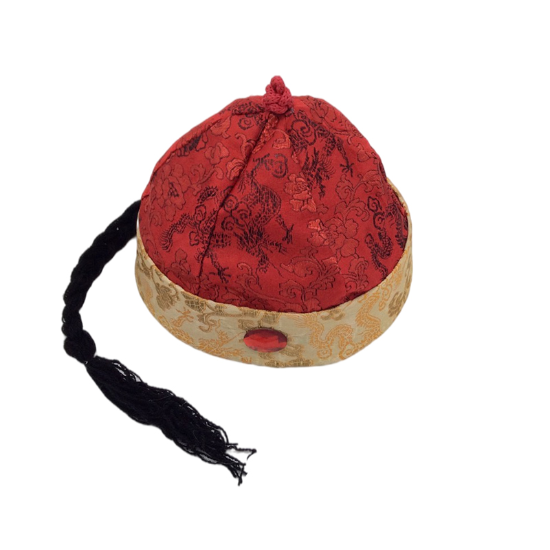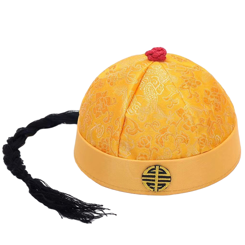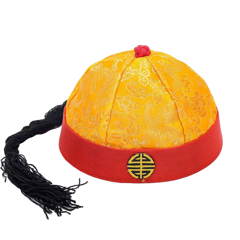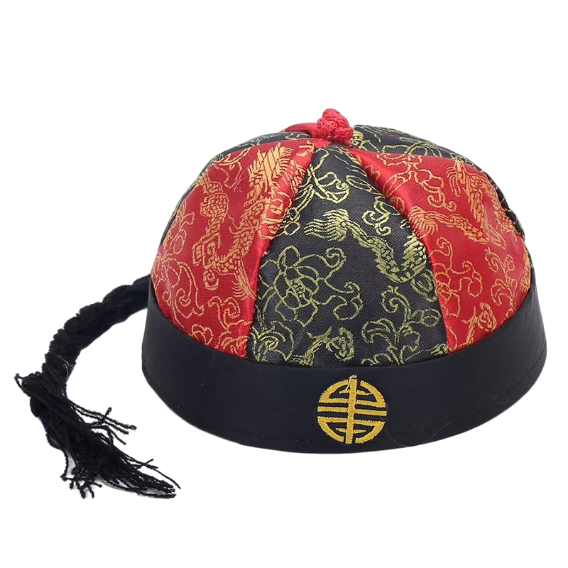 Yellow yellow red red blue red black embroidered dragon purple red embroidered longevity big red festive red copper coin hat winter thickened